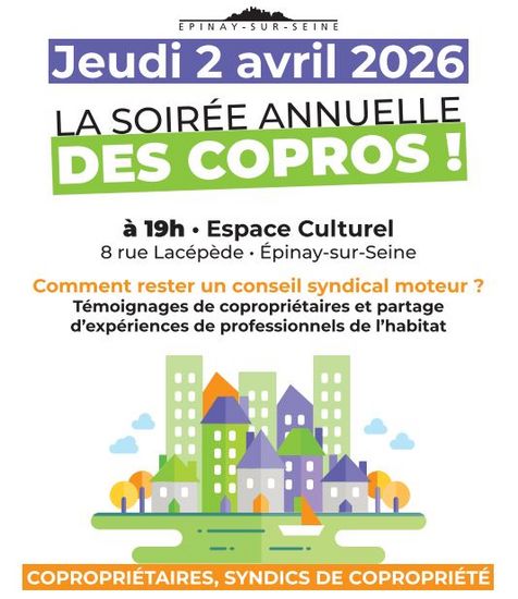 Cet événement est l’occasion pour les habitants de la commune d'Epinay-Sur-Seine, copropriétaires ou futurs copropriétaires, de venir s’informer et échanger sur les questions liées à la copropriété dans un cadre convivial et professionnel.